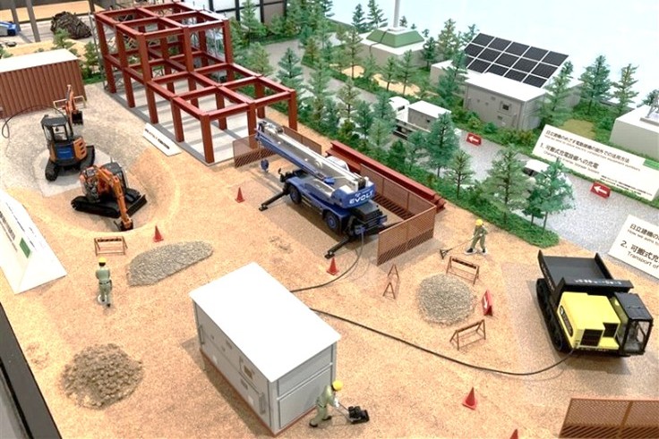 屋外では、日立建機がめざすカーボンニュートラル現場に向けた取り組みを表現したジオラマ展示や、BEAMSとコラボしたスタイリッシュなユニフォームの試着&フォトスポットも登場。