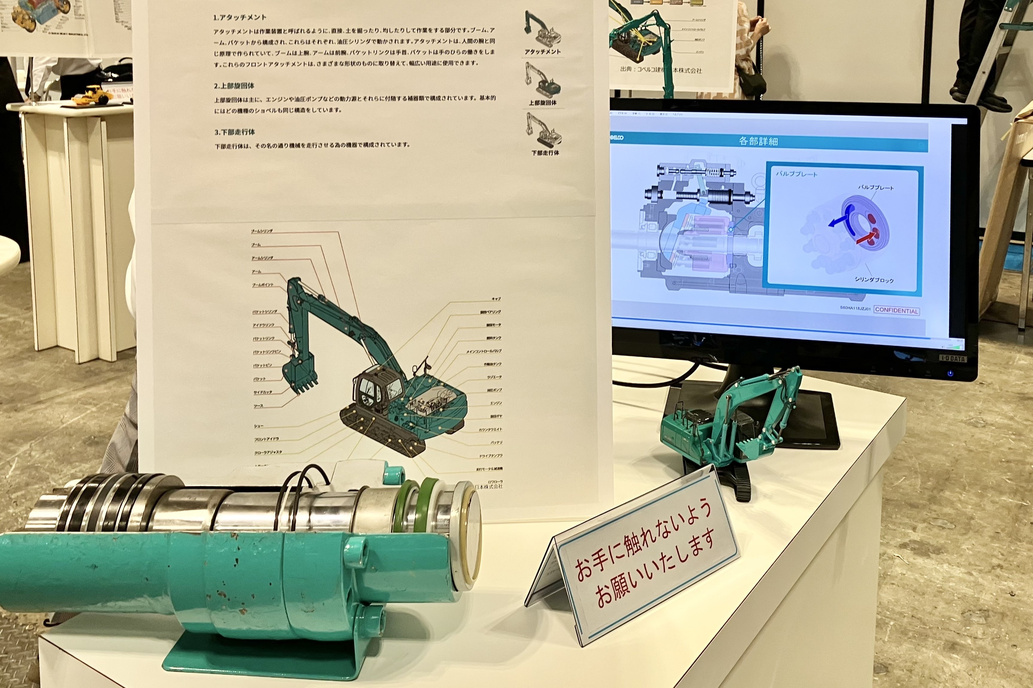 ・建設機械の仕組みや建設機械整備士の仕事がわかる内容の展示